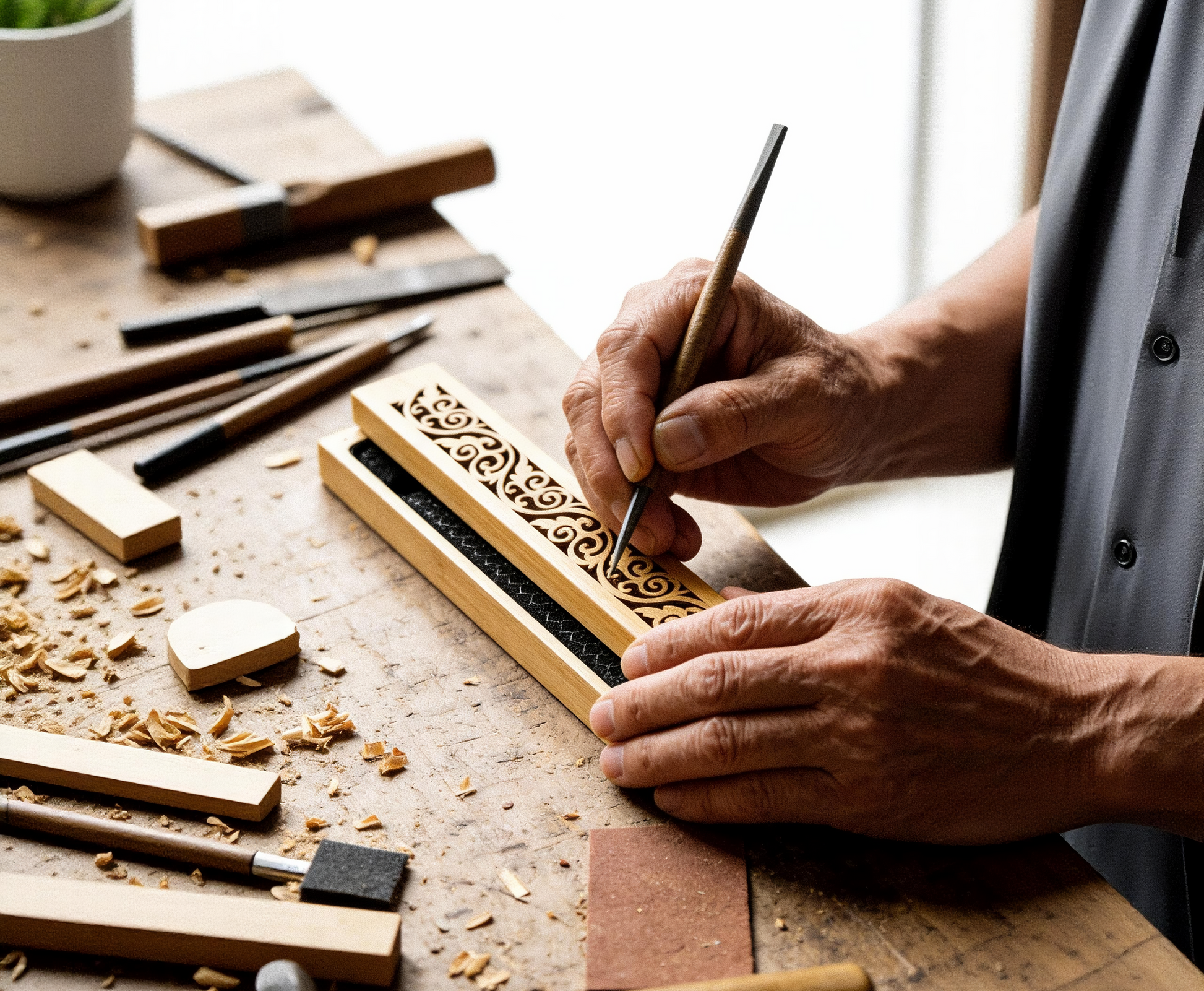 Handcrafted from natural bamboo and wood, each incense burner is shaped and finished by skilled hands.
